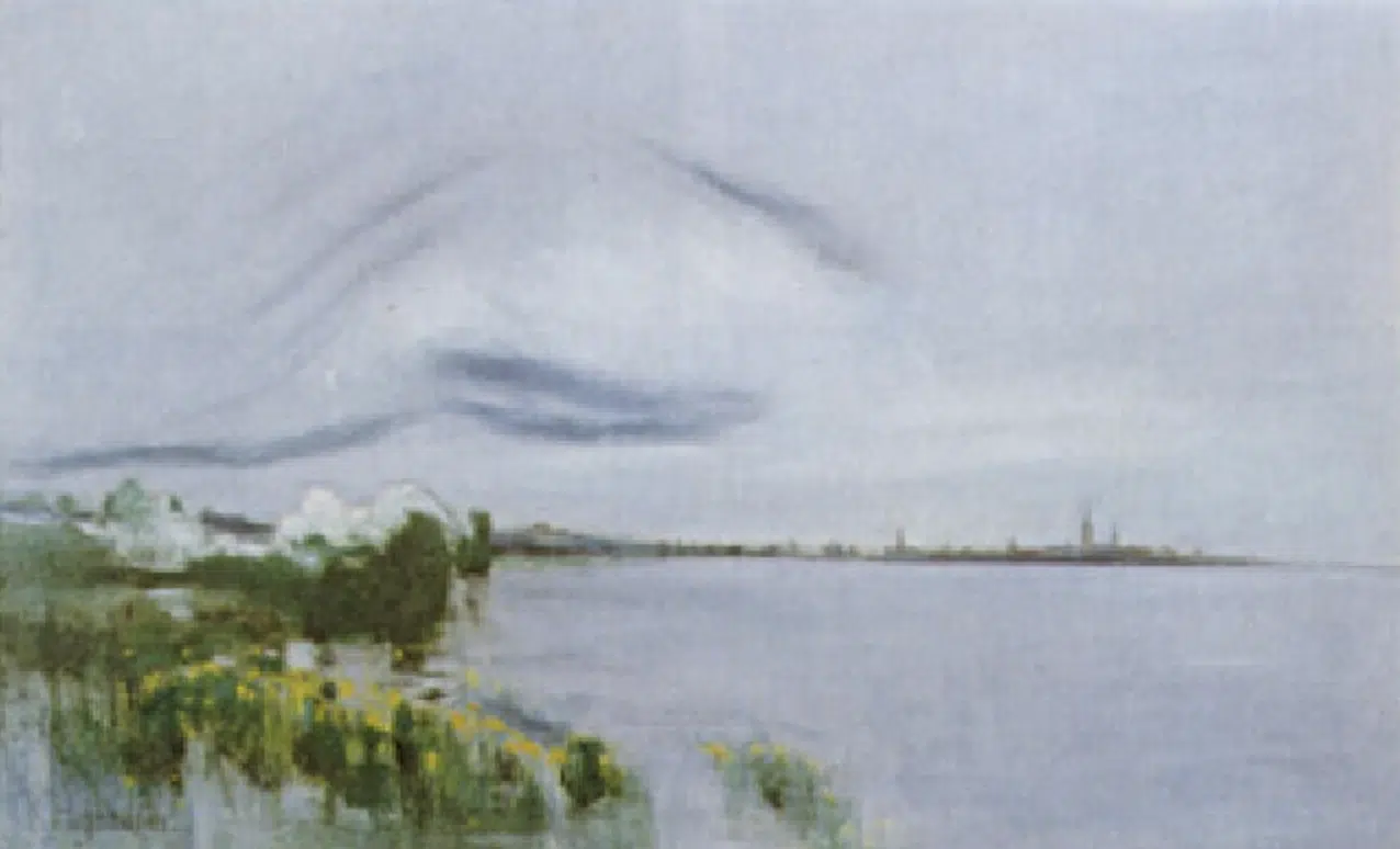 Blick über das sommerliche Flussufer der Havel auf die Stadt Werder